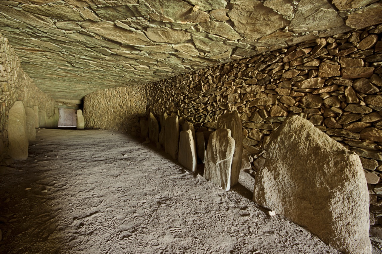 La cámara, de forma oval, tenía en su interior una combinación de pintura y grabados, sobre pizarra y granito. La pintura desapareció con el paso del tiempo.